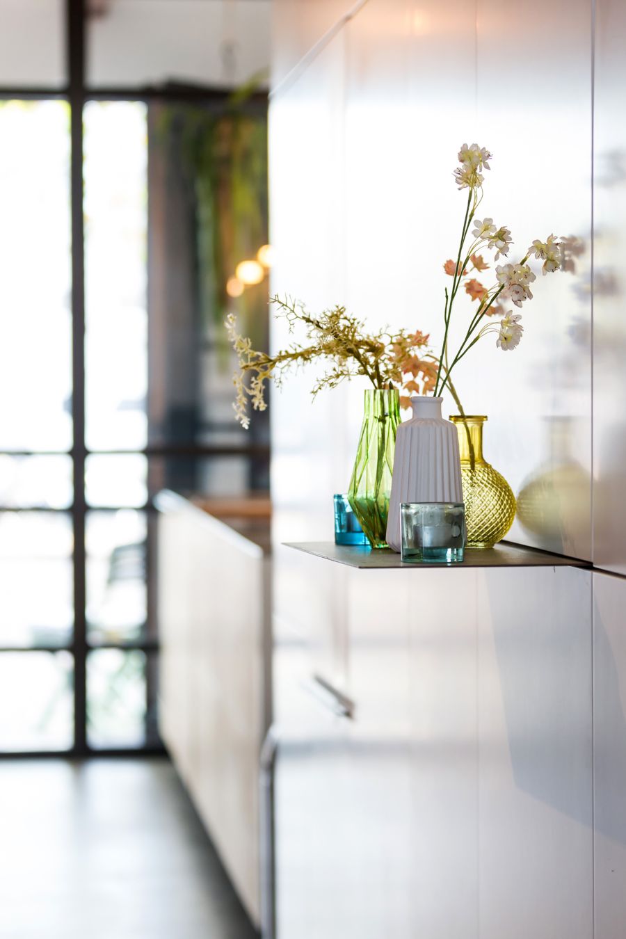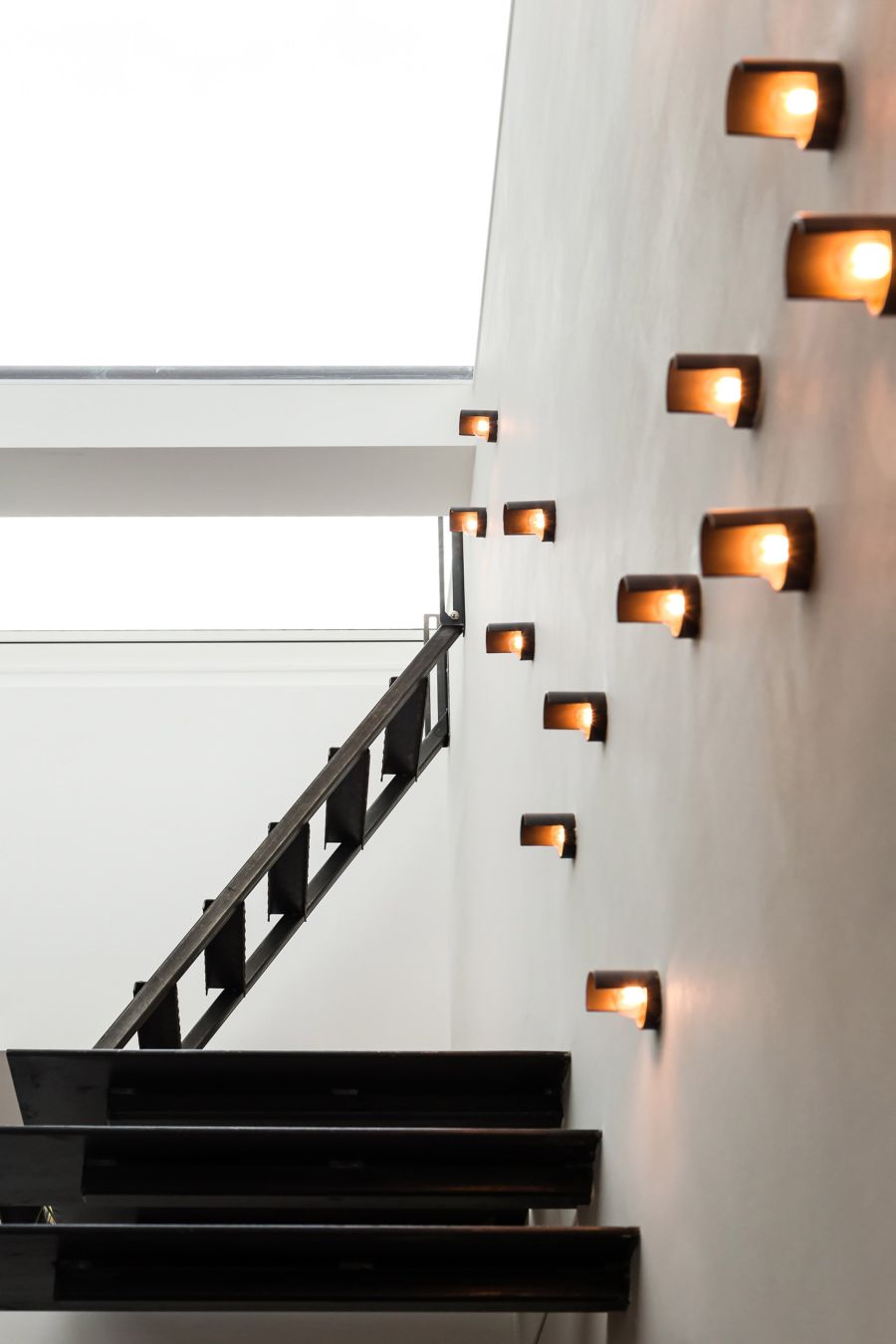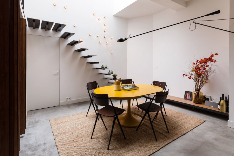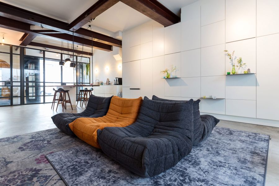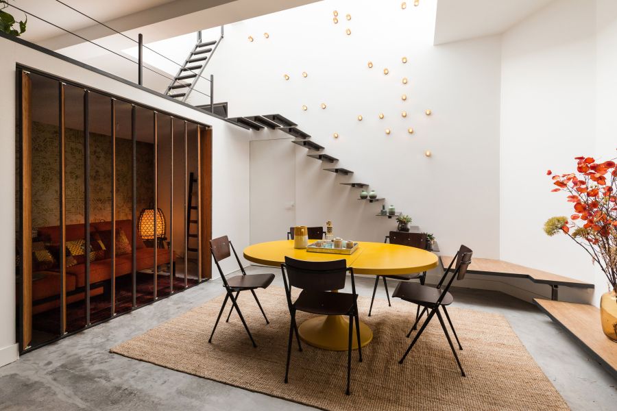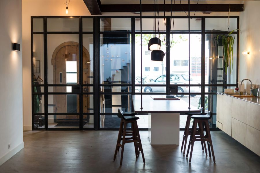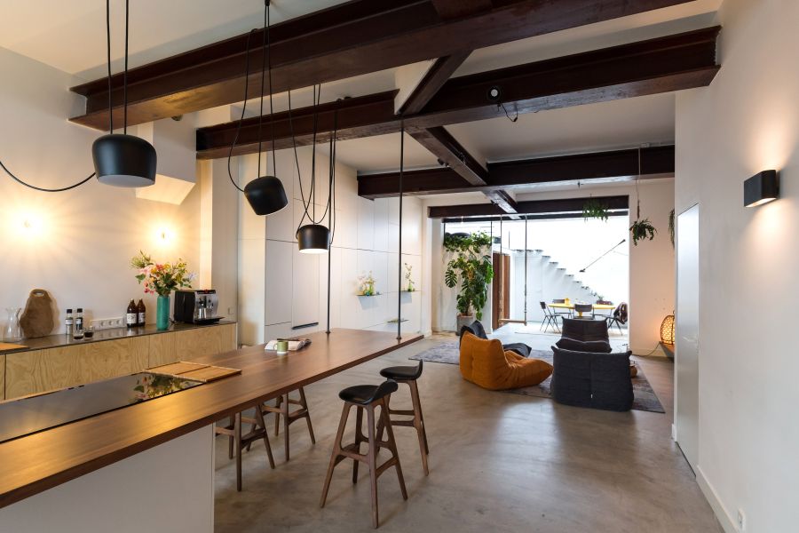 Het industriële karakter is zoveel mogelijk bewaard gebleven door de constructie te integreren in het warme interieur.