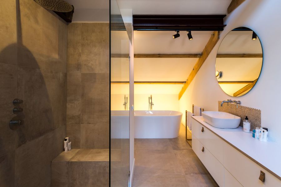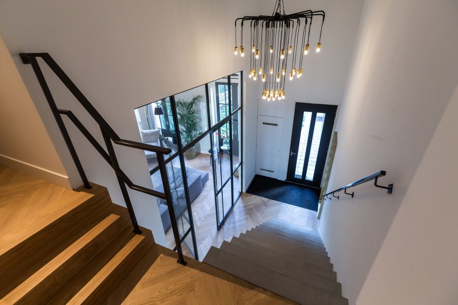 Het gehele bouw- en interieurplan werd ontworpen en op maat gemaakt; BvB maakte ook het lichtplan voor de woning en verzorgde passende vintage lampen.
