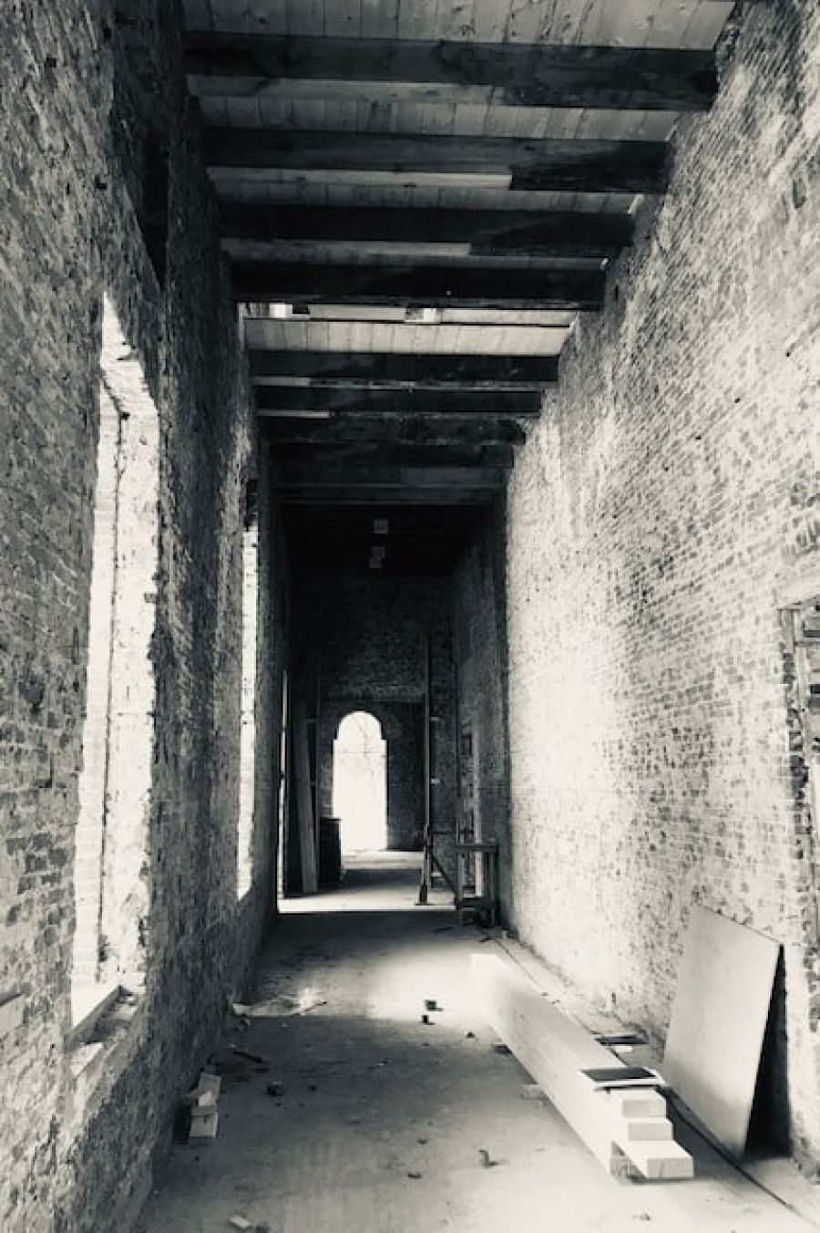 De woning is onderdeel van een gerestaureerd monument, een voormalig ziekenhuis uit 1849, en werd opgeleverd als casco. Hierdoor was het mogelijk een ontwerp op maat te verzorgen voor een bijzonder familiehuis, met gezamenlijke ruimtes en voor alle 8 gezinsleden een eigen plek.